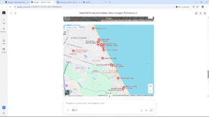 Hice un cambio puntual: pedí que el botón «Visitar» dejara de tener una gradiente y pasara a tener un fondo sólido rojo. En la interfaz esto se cambia con un par de clics en el editor visual o pidiéndoselo al modelo y ejecutar una nueva versión. Es muy cómodo para ajustar colores y estilos sin codificar CSS manualmente.